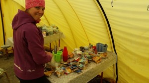 The weather changed on the journey, from hot and sunny to damp, cold and rainy – just like being at home! Arriving in camp in the bad weather, we were tired after our first proper days’ exertion since departing Ireland. We were greeted by the camp staff, whose welcome more than made up for the incessant rain. We loaded our bags into the mess tent and chowed down on copious amounts of super noodles and Russian dumplings before getting set up in the tents that were to become our homes for the next couple of weeks. The adventure was finally getting underway.
